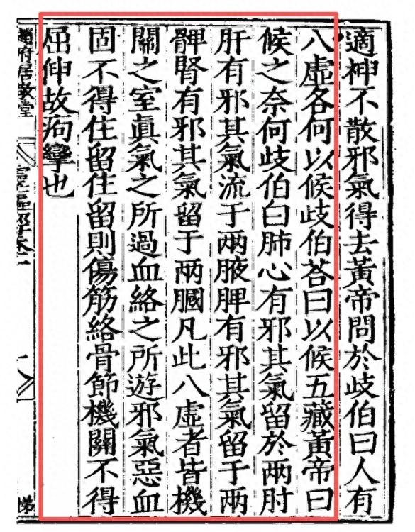 黄帝问于岐伯曰:人有八虚,各何以候?