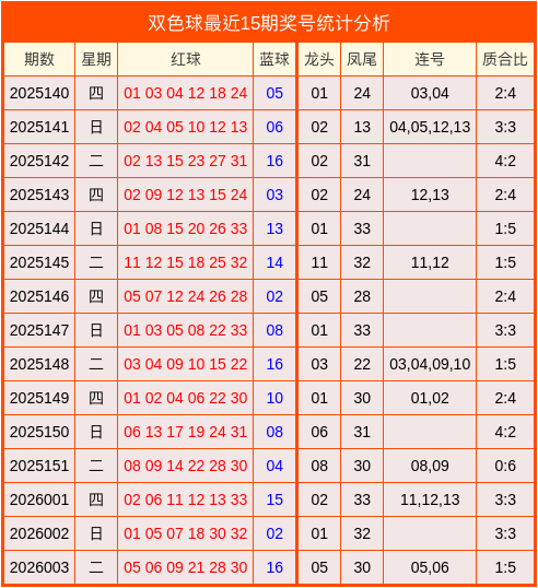 开奖回顾:双色球第2026003期奖号:05、06、09、21、28、30+16。其中龙头为05,凤尾为30,质合比为1:5,开出1组连号05,06。