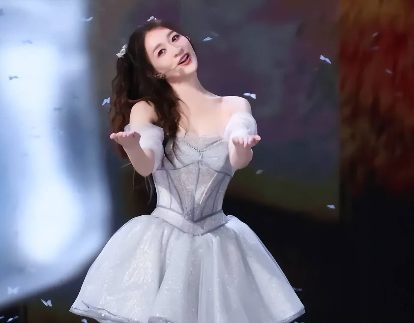 随之而来的,是一种充满反差感的逆袭叙事。为了记住歌词,她在手臂上抄满笔记,成了“人体提词器”;为弥补不足,她日均训练10小时,用最笨拙的努力打磨二公舞台。观众戏称她为“内娱50岁养成系”。而她冻龄的外表(冷白皮、零颈纹)与自嘲“缺心眼”的接地气言行所形成的巨大反差,恰恰成了最动人的注脚。网友的评论道出了这种微妙心理:“狼狈的真实,比精致的完美更珍贵。”