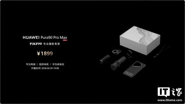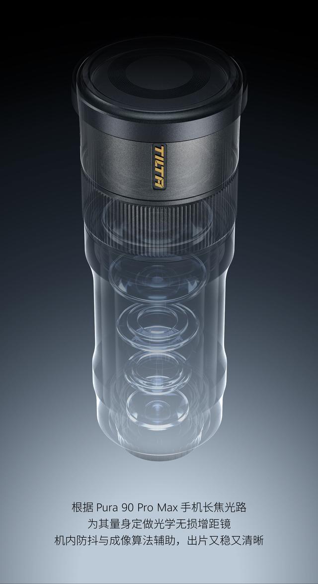 华为还发布了与 TILTA(铁头)合作推出的 HUAWEI Pura 90 Pro Max 专业摄影套装,售价 1899 元,包含手机壳、摄影手柄、增距镜等配件,搭配 Pura 90 Pro Max 可实现等效焦距 324mm。